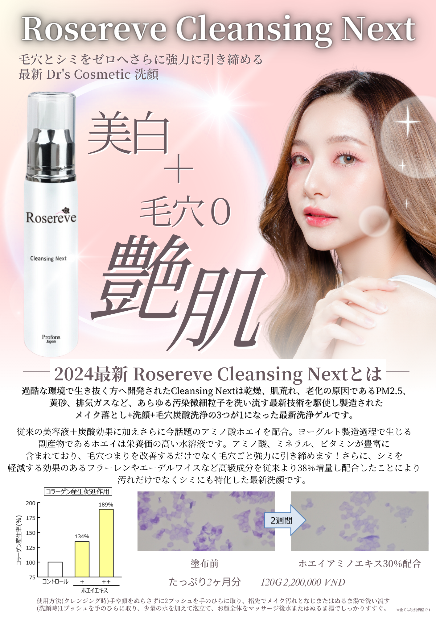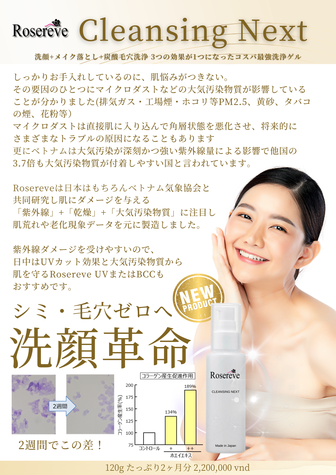 高濃度の保湿成分を配合。洗うたびに肌をいたわり、洗顔後もつっぱり感のない、しっとり滑らかな素肌へと導きます。 - ベトナムの環境汚れもリセット
